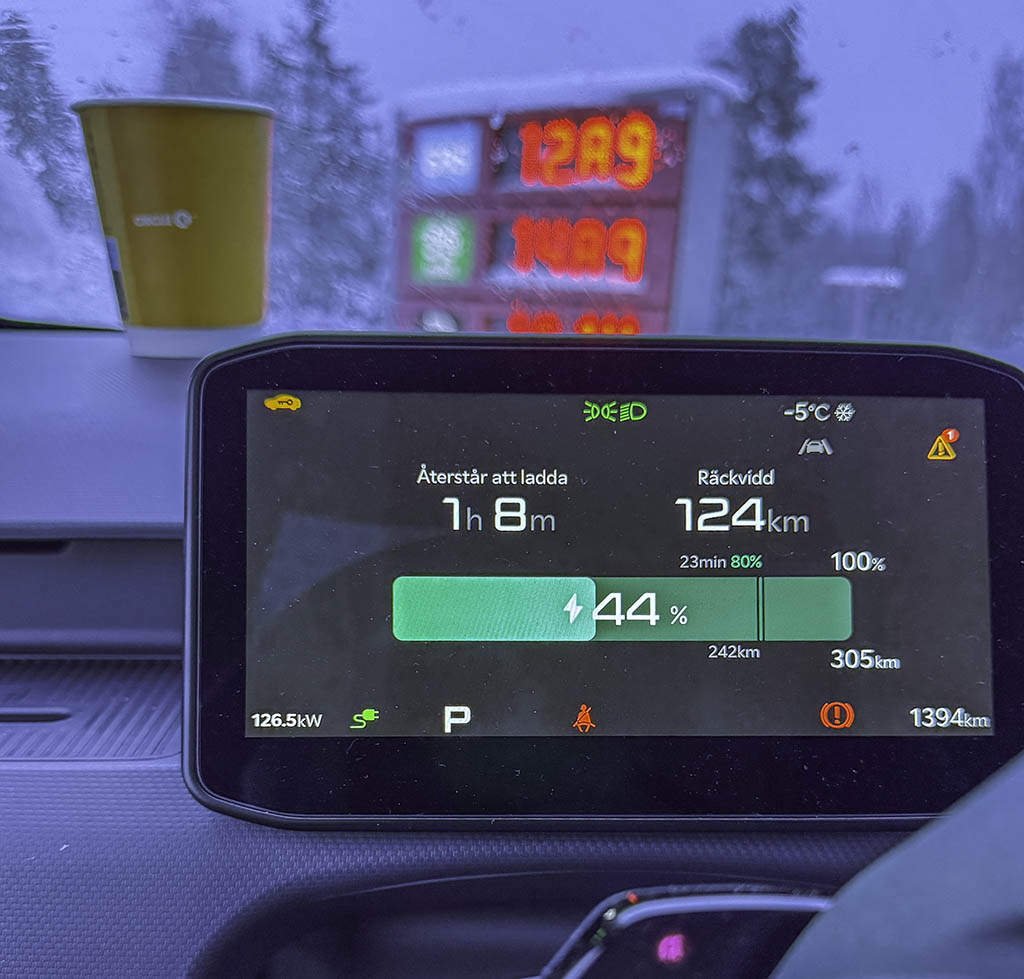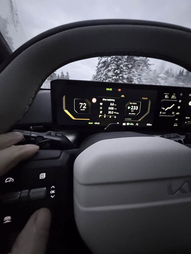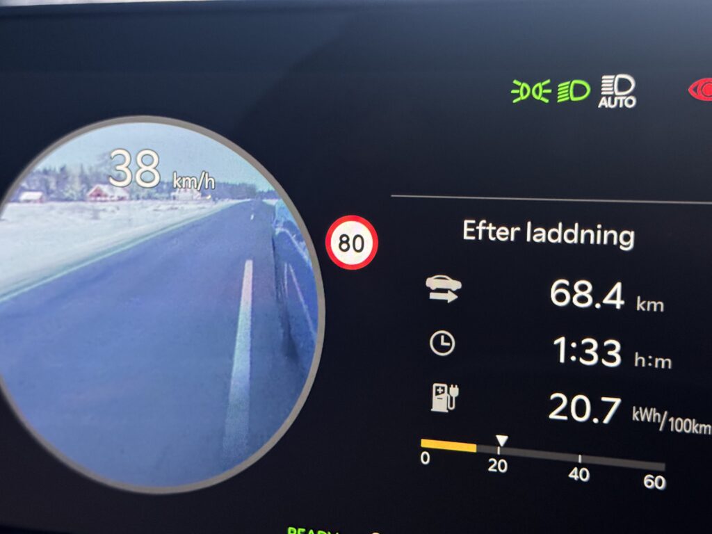 Det vi noterade när det gäller förarstöden var att filhållaren normalt har mjuka styrkorrigeringar men mer bestämda ingrepp i kritiska situationer. Den adaptiva farthållaren använder sig av navigationen och en framåtriktad kamera för att identifiera hastighetsgränser och varnar föraren om det går för fort. Extra plus för att det är lätt att stänga av filhållaren med en knapp på ratten. En viktig säkerhetsgrej när det är risk för halka då filhållaren kan orsaka en sladd.