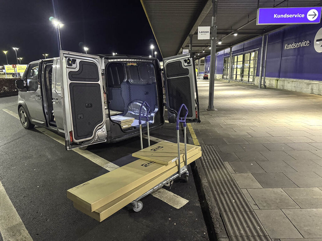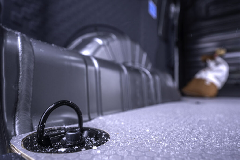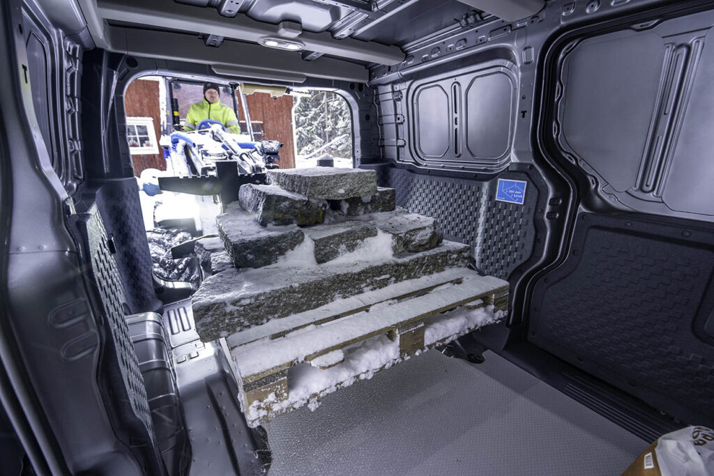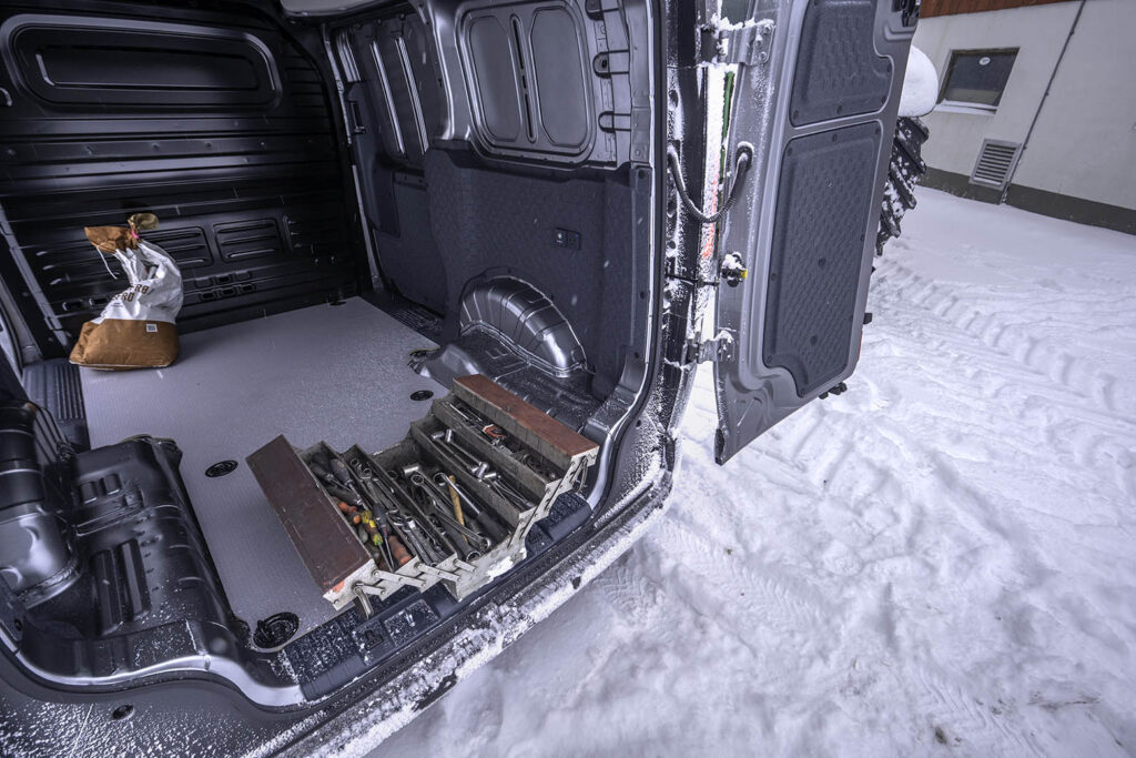 Vill man lasta en SJ pall på tvären måste den stå på något då hjulupphängningen bak tar en del av lastbredden den första decimetern. Mellan hjulhusen är det dock 1.330 mm så där får den plats. Lastningen är dock superenkel med två bakdörrar som kan öppnas 180 grader så det går att komma intill med en gaffeltruck eller lastmaskin. På sidorna har bilen två breda skjutdörrar som gör lastutrymmet lättåtkomligt även i trånga lägen. Det erbjuds även en version med bara en sidodörr, viktigt för vissa inredningar. Åtta rejäla lastsäkringsöglor är monterade på golvet, så det är inga problem att säkra lasten. Väggarna är klädda med ett tunt ljuddämpningsmaterial.