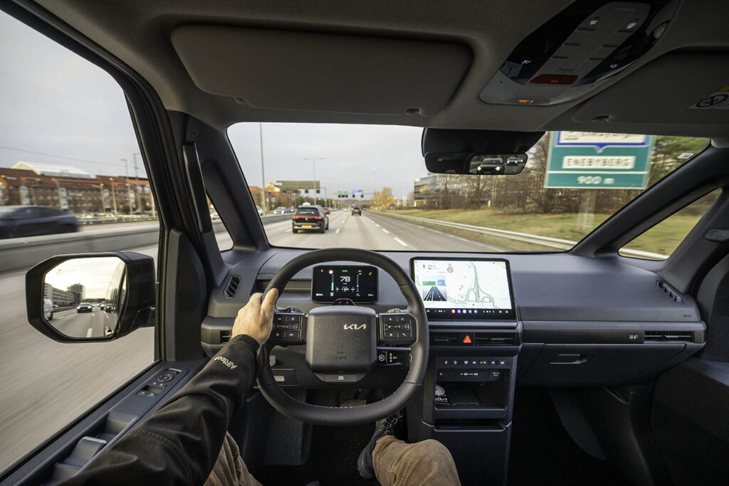 Kia har en smart lösning där valet av strålkastarläge kommer upp i displayen när du byter från exempelvis auto till parkering och på samma sätt syns valt vindrutetorkarläge när du ändrar torkarna. En riktigt smart lösning, särskilt för bilar som används av flera olika användare. Dessutom syns bilden från en kamera vid sidobackspegeln när man blinkar för att byta fil eller svänga. Även det en smart och enkel säkerhetslösning. På tal om säkerhet så har PV5 fått fem stjärnor i EuroNCAP:s säkerhetsklassning och höga poäng både för krocksäkerheten och förarstöden.